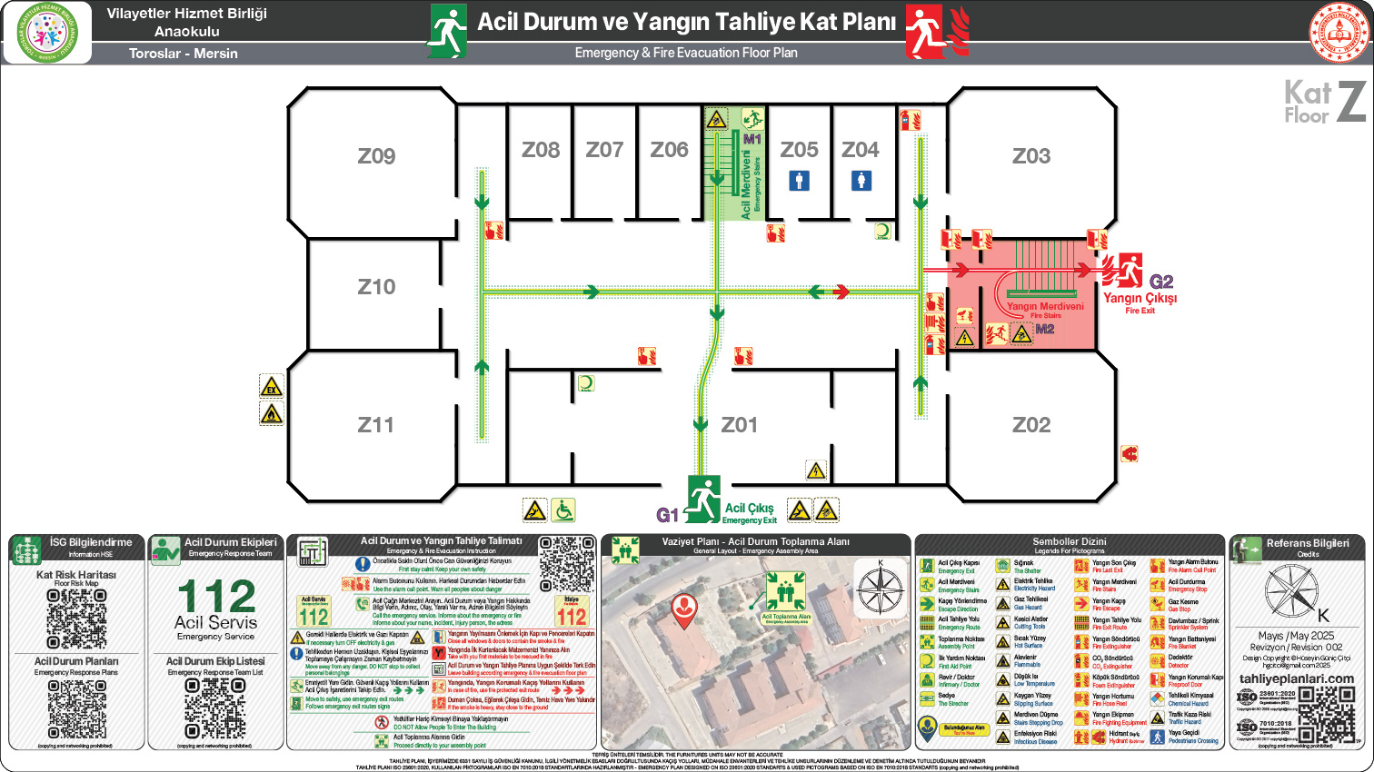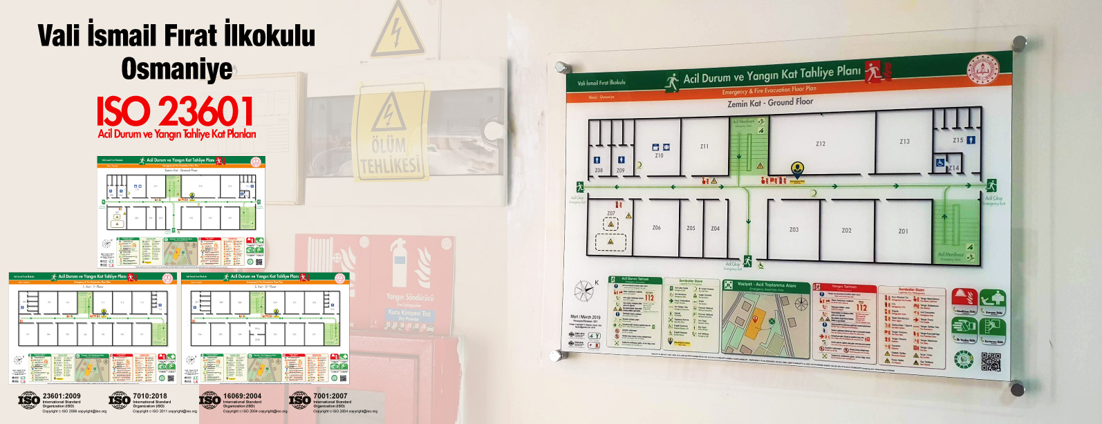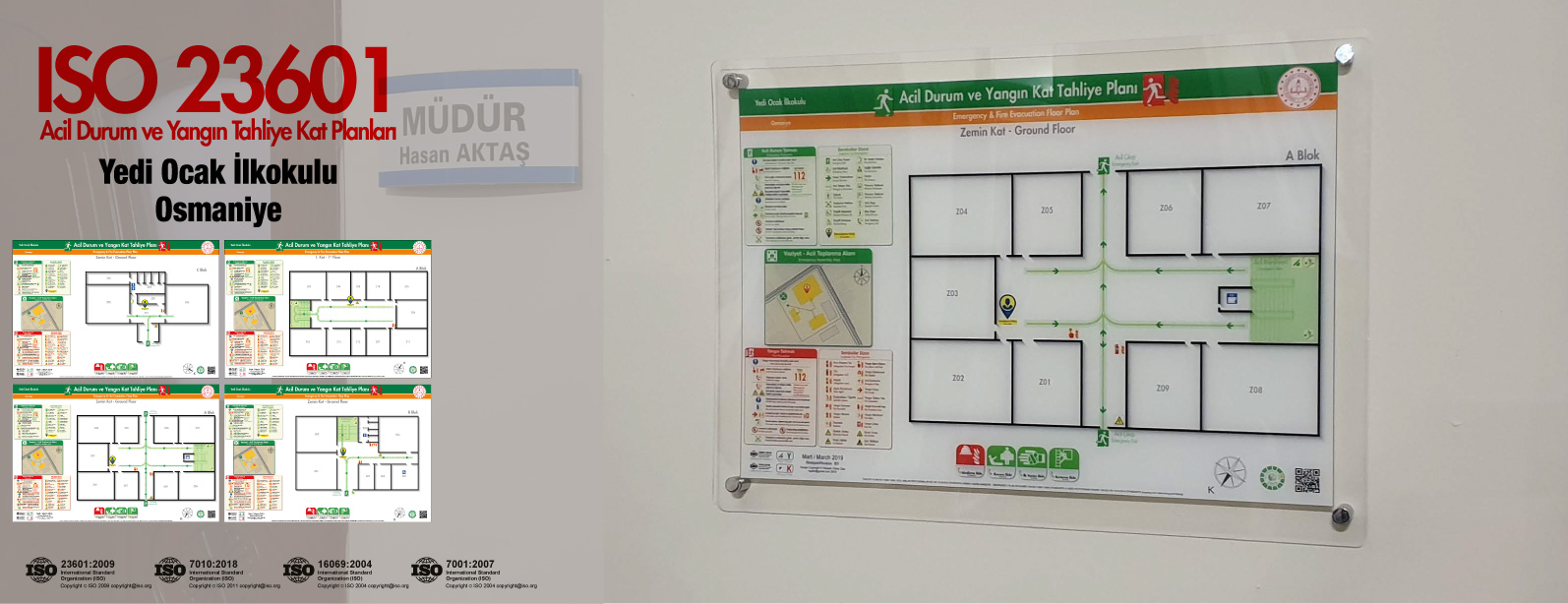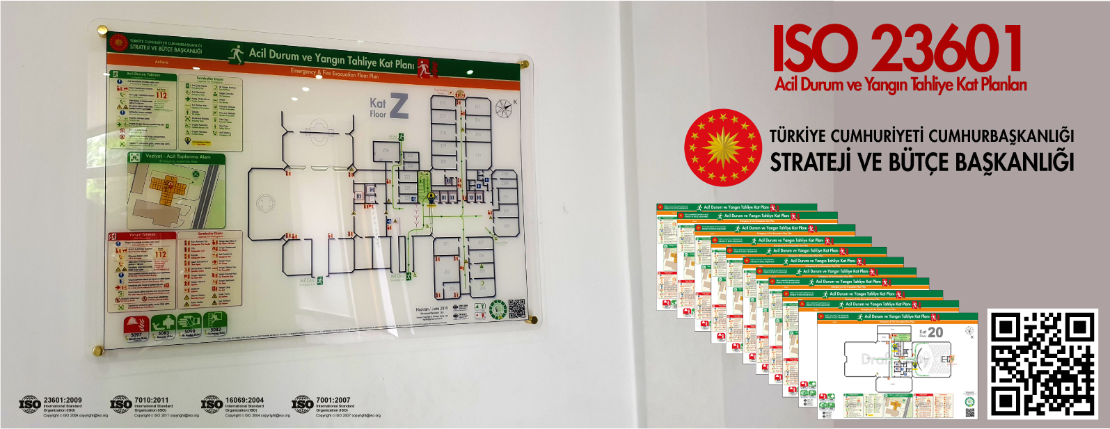 Profesyonel ISO 23601 Standartlarında Acil Durum ve Yangın Tahliye Kat Planları