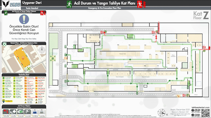 Tahliye Planları güncel “İşyerlerinde Acil Durum Yönetmeliği” ve bağlı mevzuat