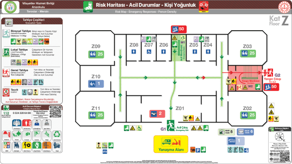 Acil Durum ve Yangın Tahliye Kat Planı, Risk Analizi esaslı hazırlanan ADP dosyasının özet grafiği niteliğinde hazırlanır.