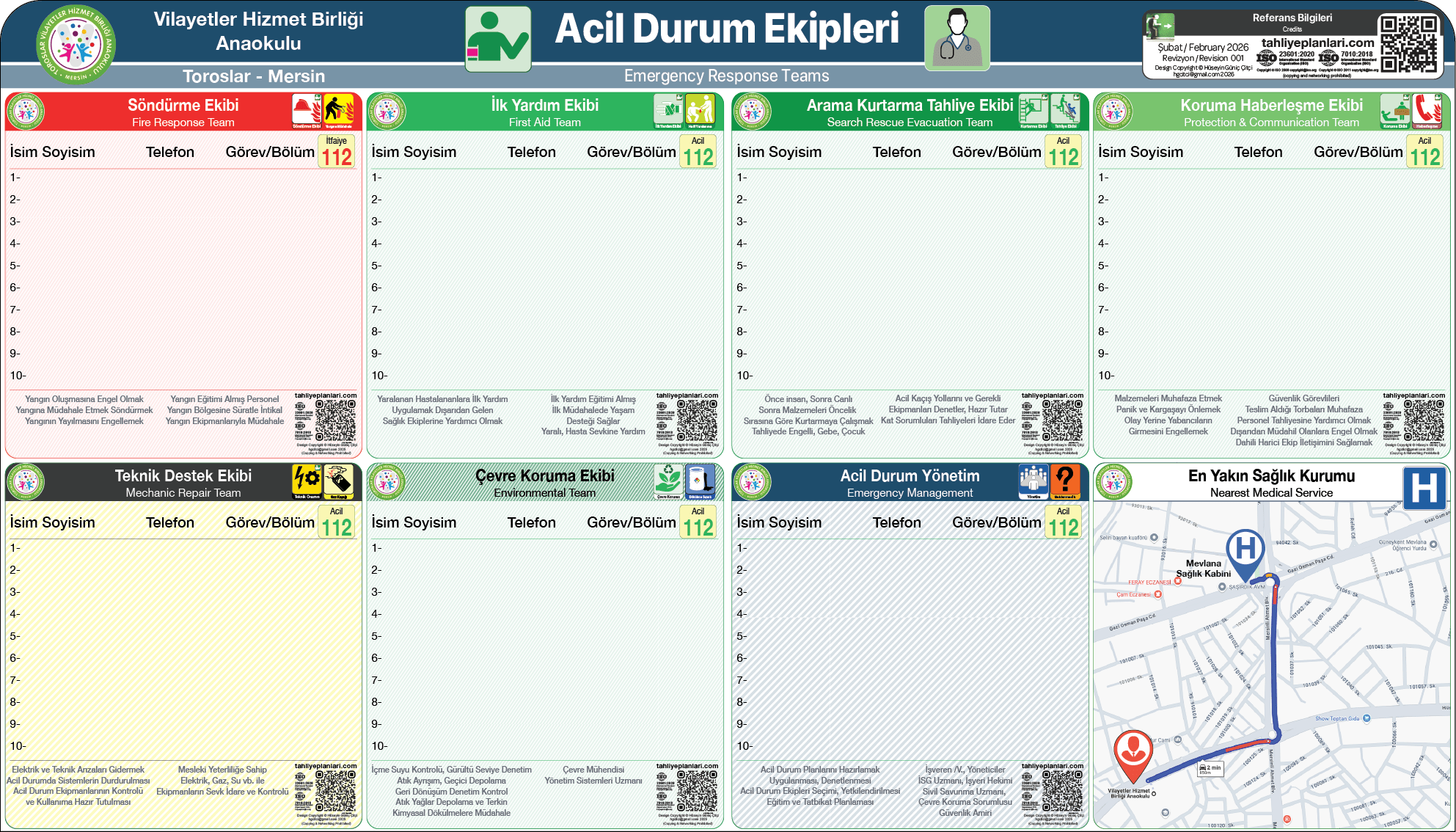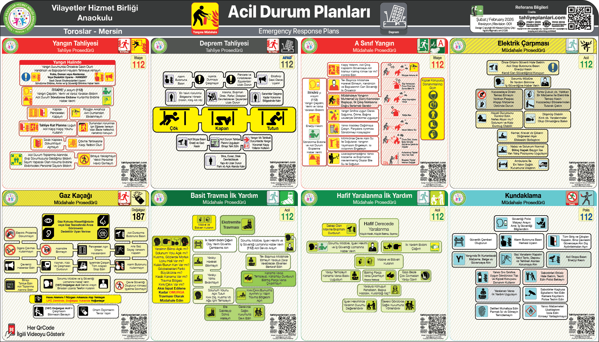 ISO Standartları ve işyerlerinde Acil durum yönetmeliği ve ilgili diğer yönetmelik esaslarına uygun olarak hazırlanmaktadır