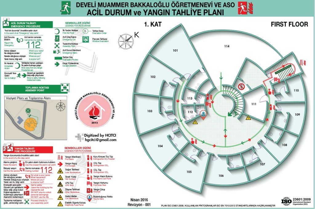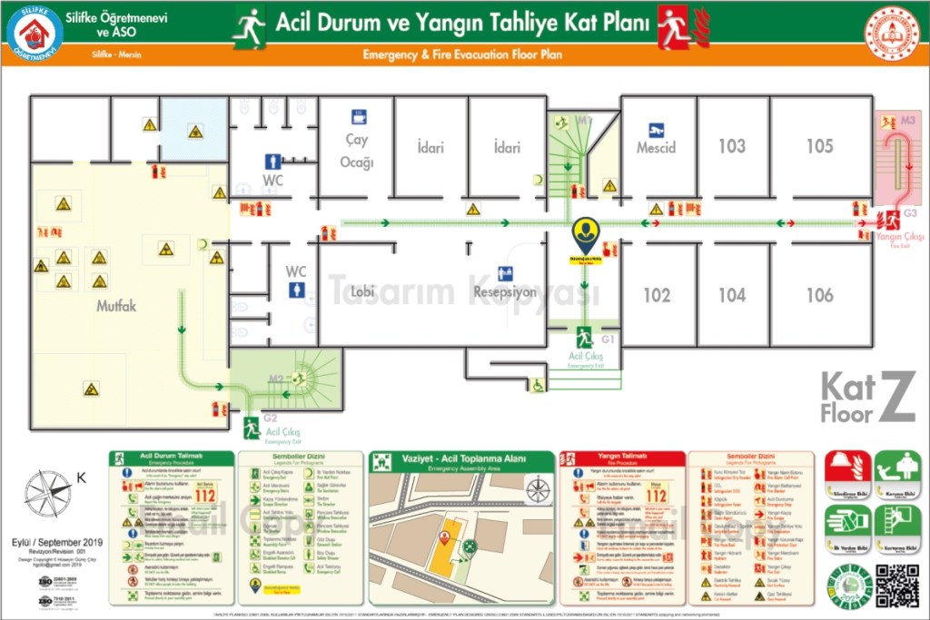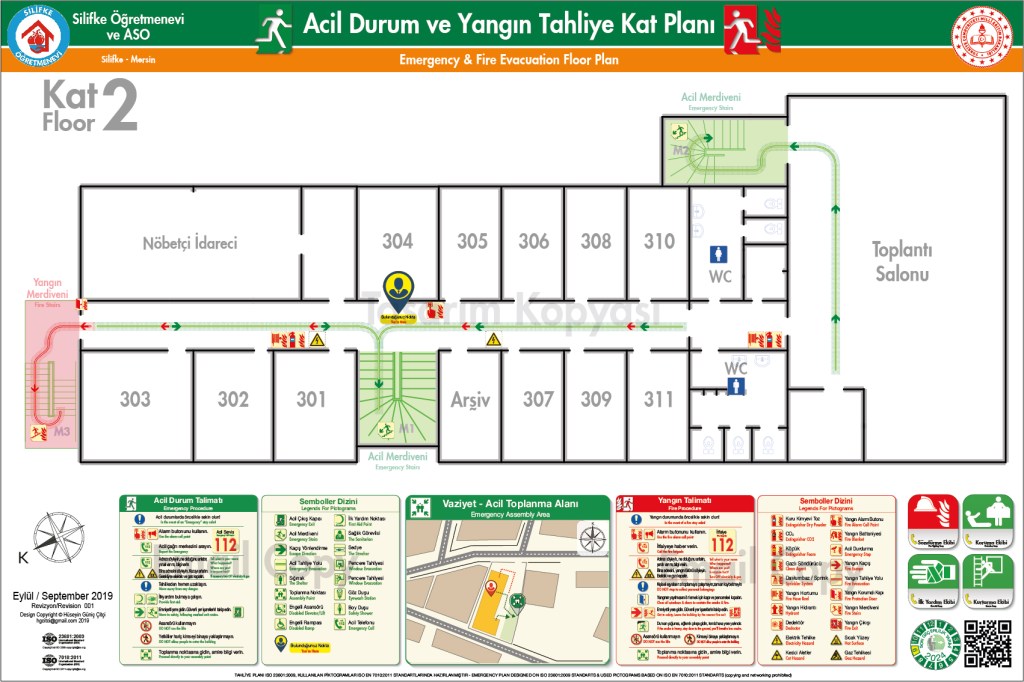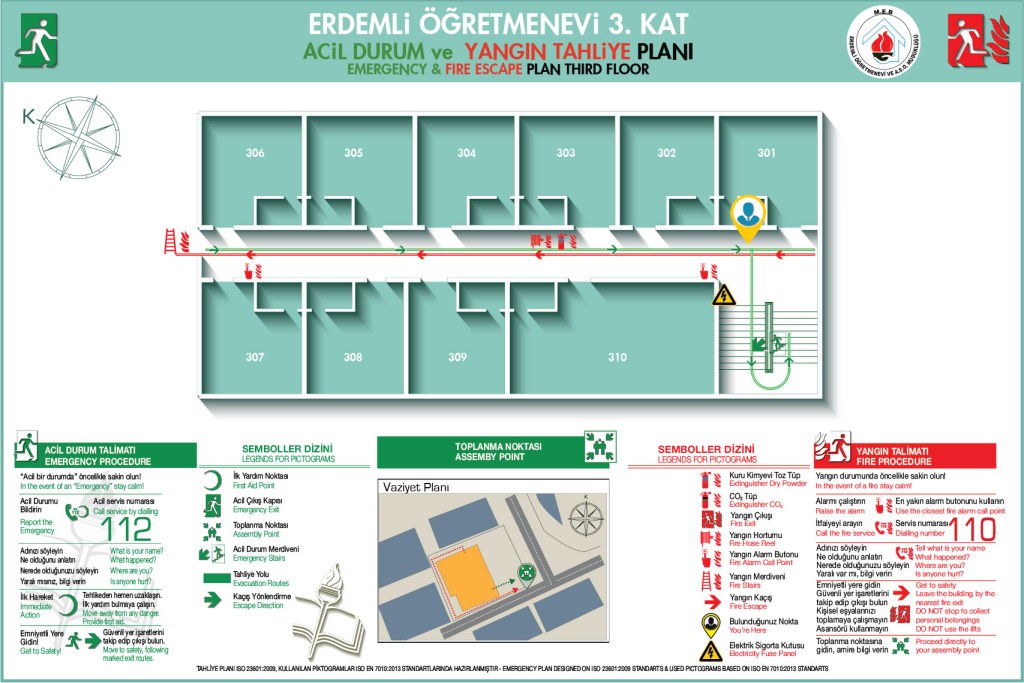 Mersin Erdemli Öğretmenevi Acil Durum Planı, Yangın Tahliye Planı, Emergency Evacuation Diagram, School Emergency Escape Plan