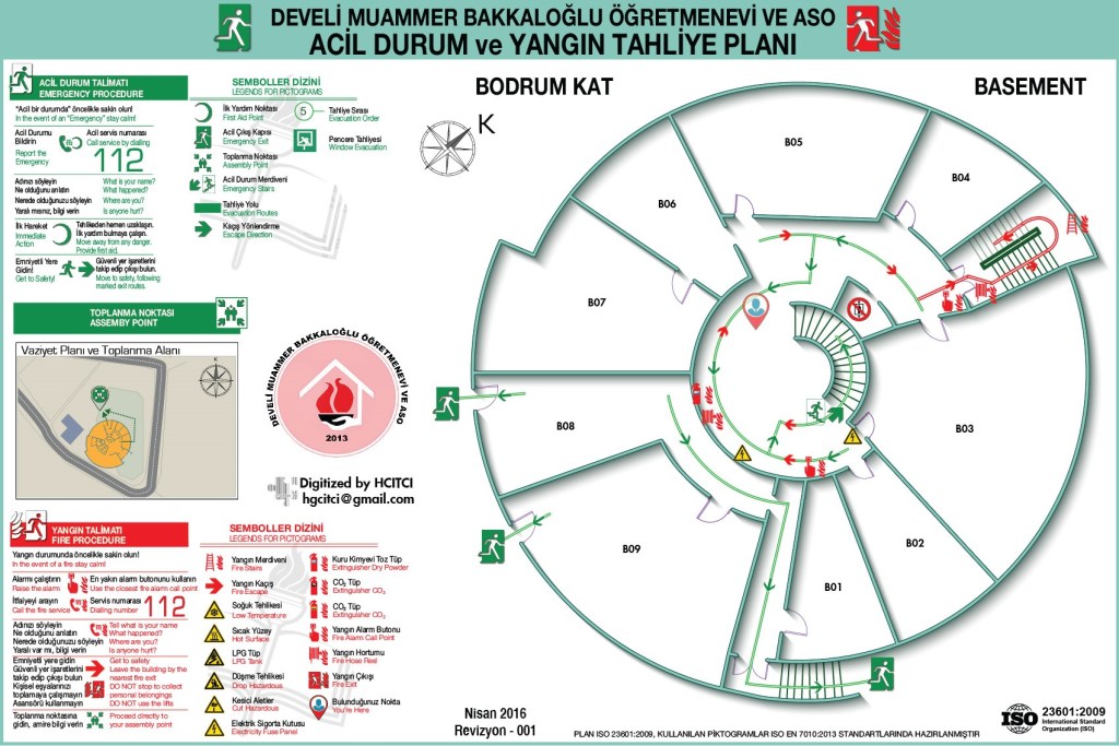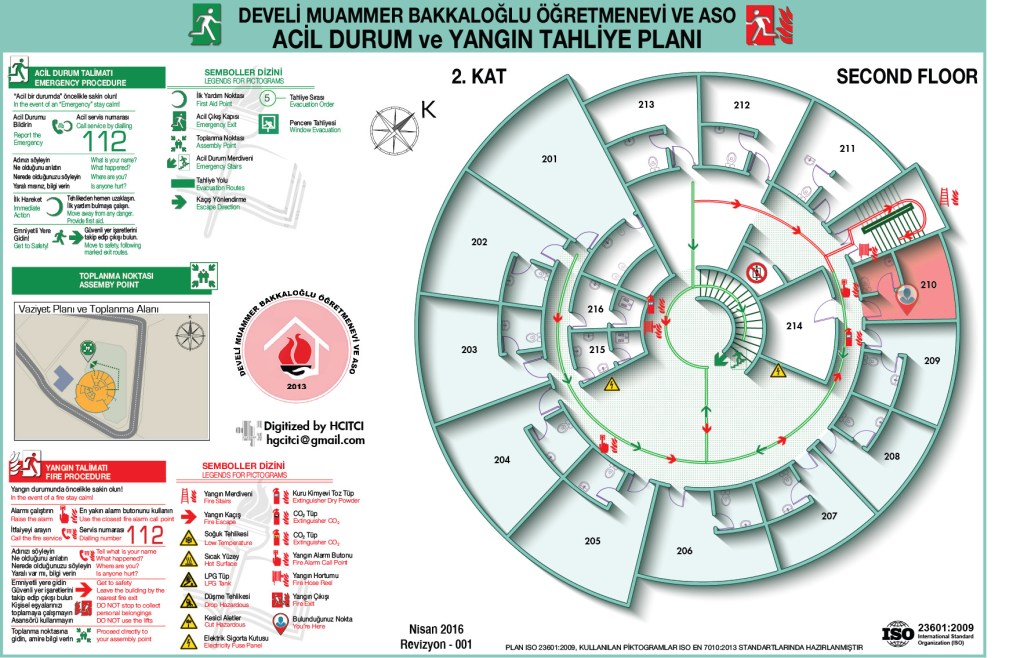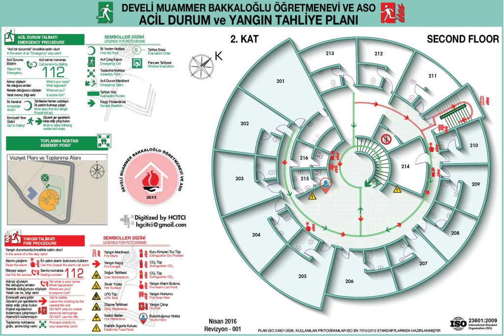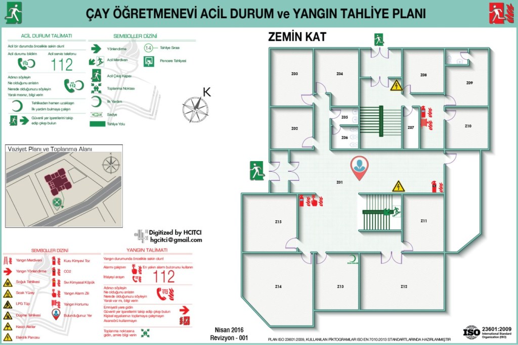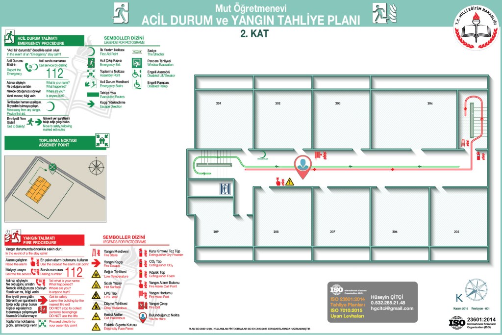 Mersin Erdemli Öğretmenevi Acil Durum Planı, Yangın Tahliye Planı, Emergency Evacuation Diagram, School Emergency Escape Plan