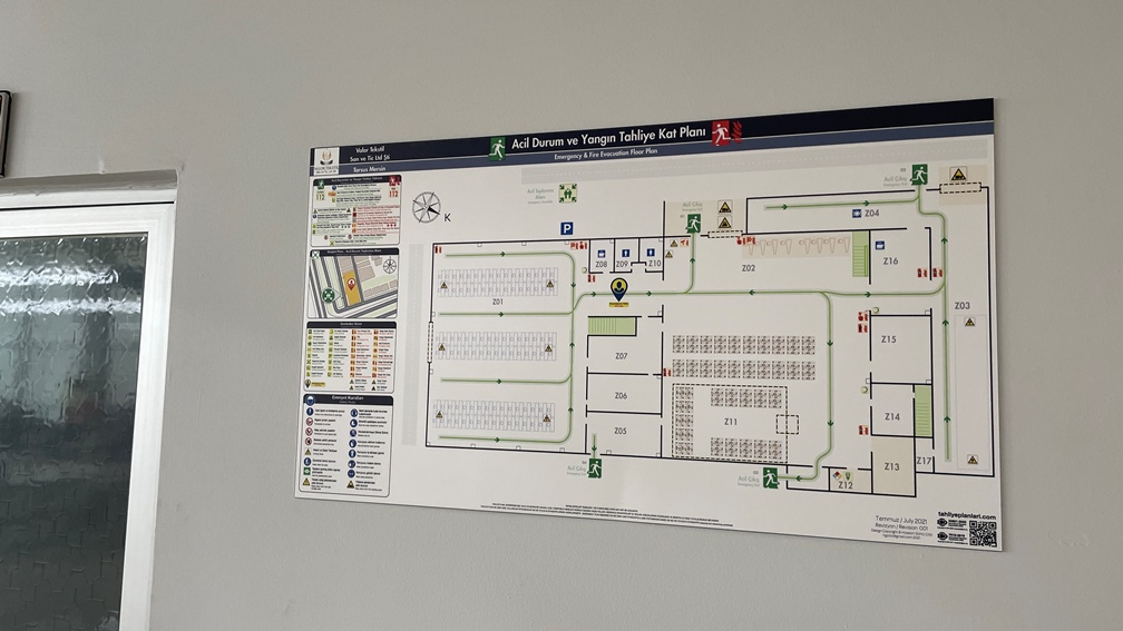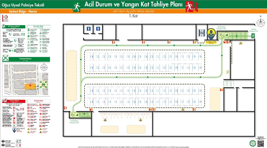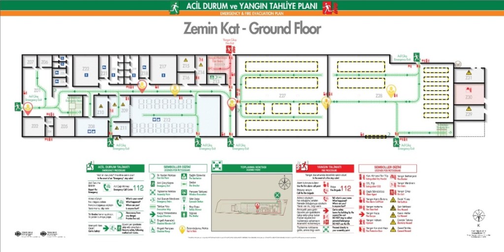 Tekstil ISO 23601 Acil Durum ve Yangın Tahliye Kat Planı örnekleri