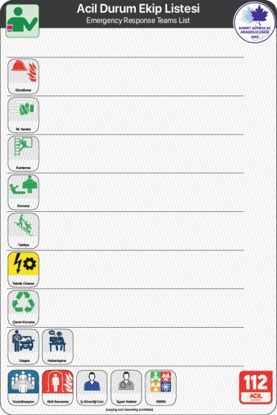 6331 Sayılı Kanun ve İşyerlerinde Acil Durum Yöenetmeliği kapsamında, ilgili hükümler gereği, ziyaretçi ve çalışanların bilgilendirilmesi amacıyla yayımlanmıştır