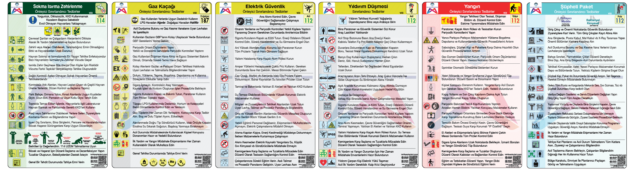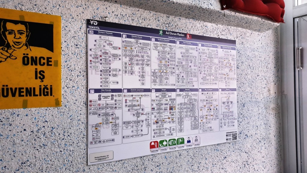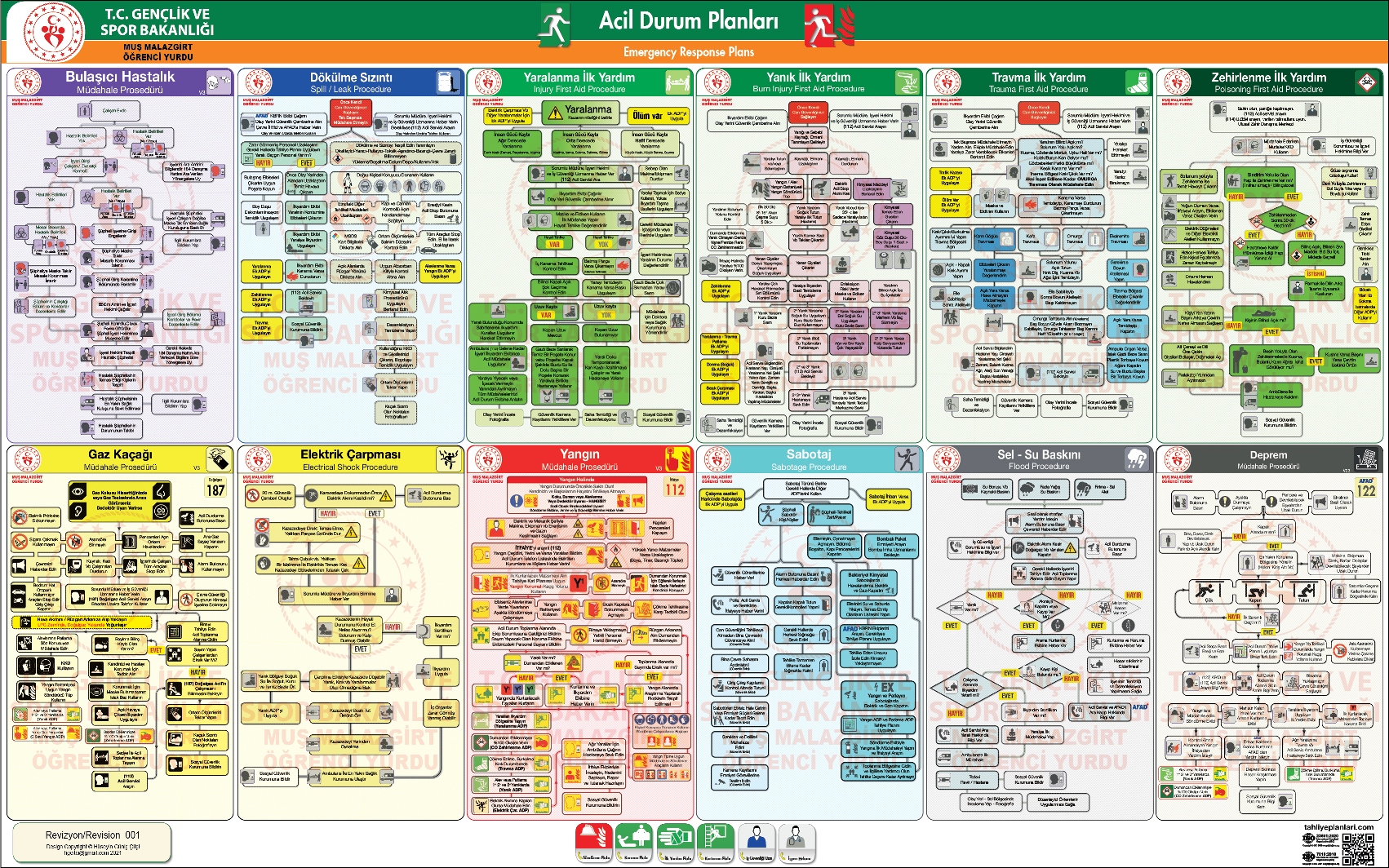 Acil Durum Planları Panosu Bulaşıcı Hastalık, Dökülme Sızıntı, Yaralanma, Yanık, Travma, Zehirlenme, Gaz Kaçağı, Elektrik Çarpması, Yangın, Sabotaj, Sel Su Baskını, Deprem