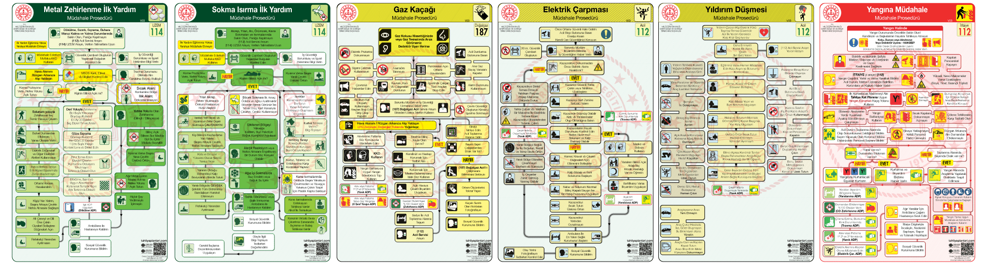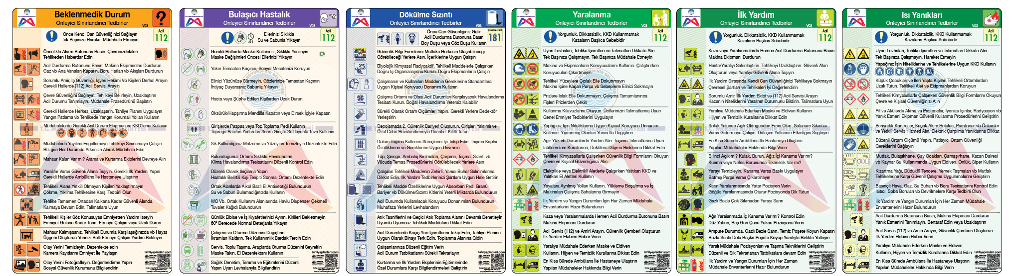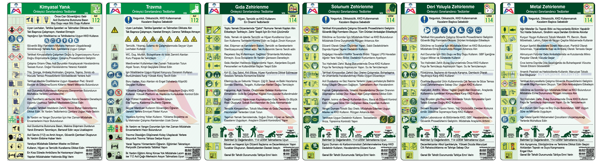 Acil Durum Planları Panosu Bulaşıcı Hastalık, Dökülme Sızıntı, Yaralanma, Yanık, Travma, Zehirlenme, Gaz Kaçağı, Elektrik Çarpması, Yangın, Sabotaj, Sel Su Baskını, Deprem