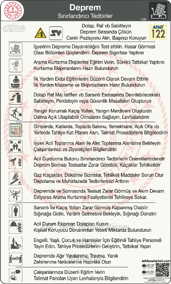 Deprem Önleyici Sınırlandırıcı Talimatlı Müdahale Algoritması Panosu PDF dosya+ 40x50cm veya 50x65cm UV baskı pano olarak temin edebilirsiniz