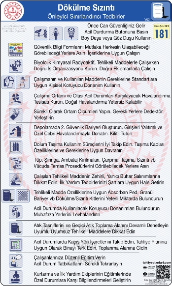 Dökülme Sızıntı Önleyici Sınırlandırıcı Talimatlı Müdahale Algoritması Panoyu PDF dosya+ 40x50cm veya 50x65cm UV baskı pano olarak temin edebilirsiniz
