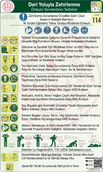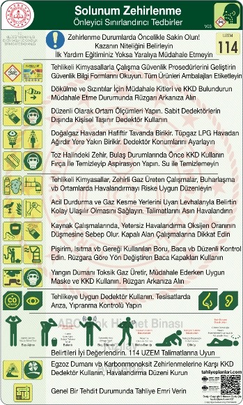 İşyerinizde tehlikeli kimyasallar, yanıcı sıvı ve gazlar, sıkıştırılmış gaz tüpleri , yemek pişirimi, kantin vb zehirlenmenin yaşanabileceği alanlarda panonun tekrarlanarak asılması tavsiye edilir