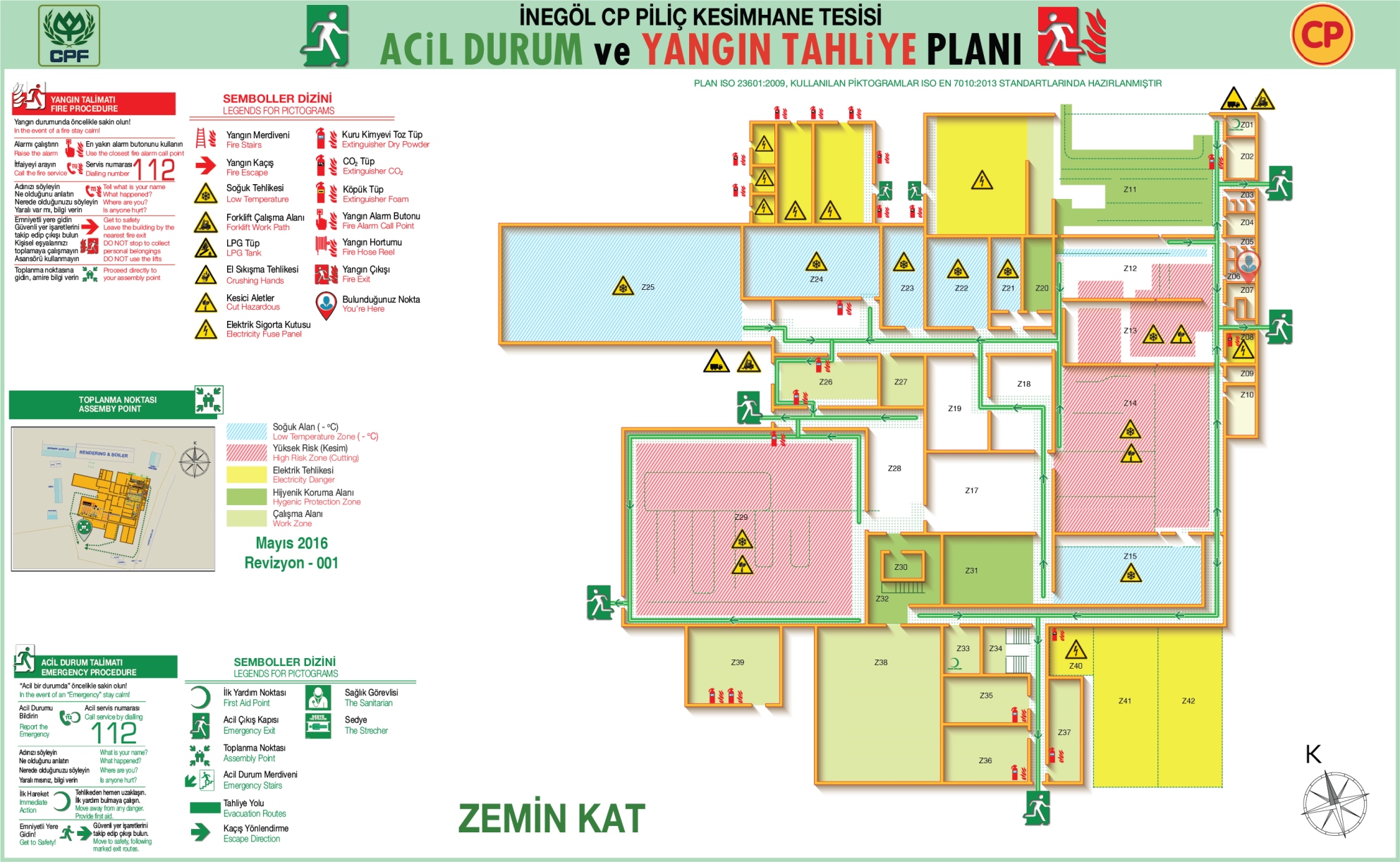 Gıda Tesisi ISO 23601 Acil Durum ve Yangın Tahliye Kat Planı Örnekleri Acil Durum Planı