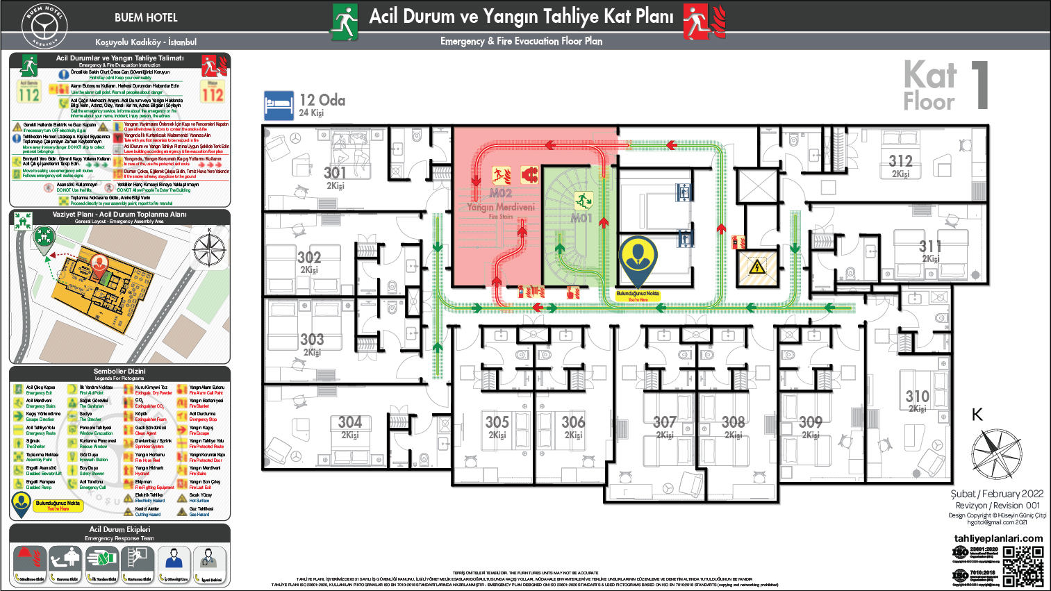 02/A – Oda Kapı Arkası Acil Durum ve Yangın Tahliye Planı