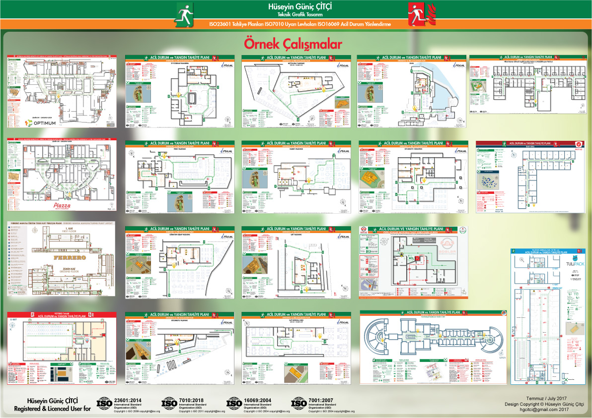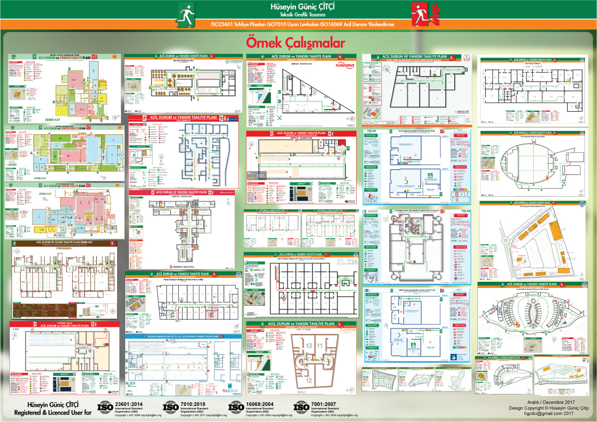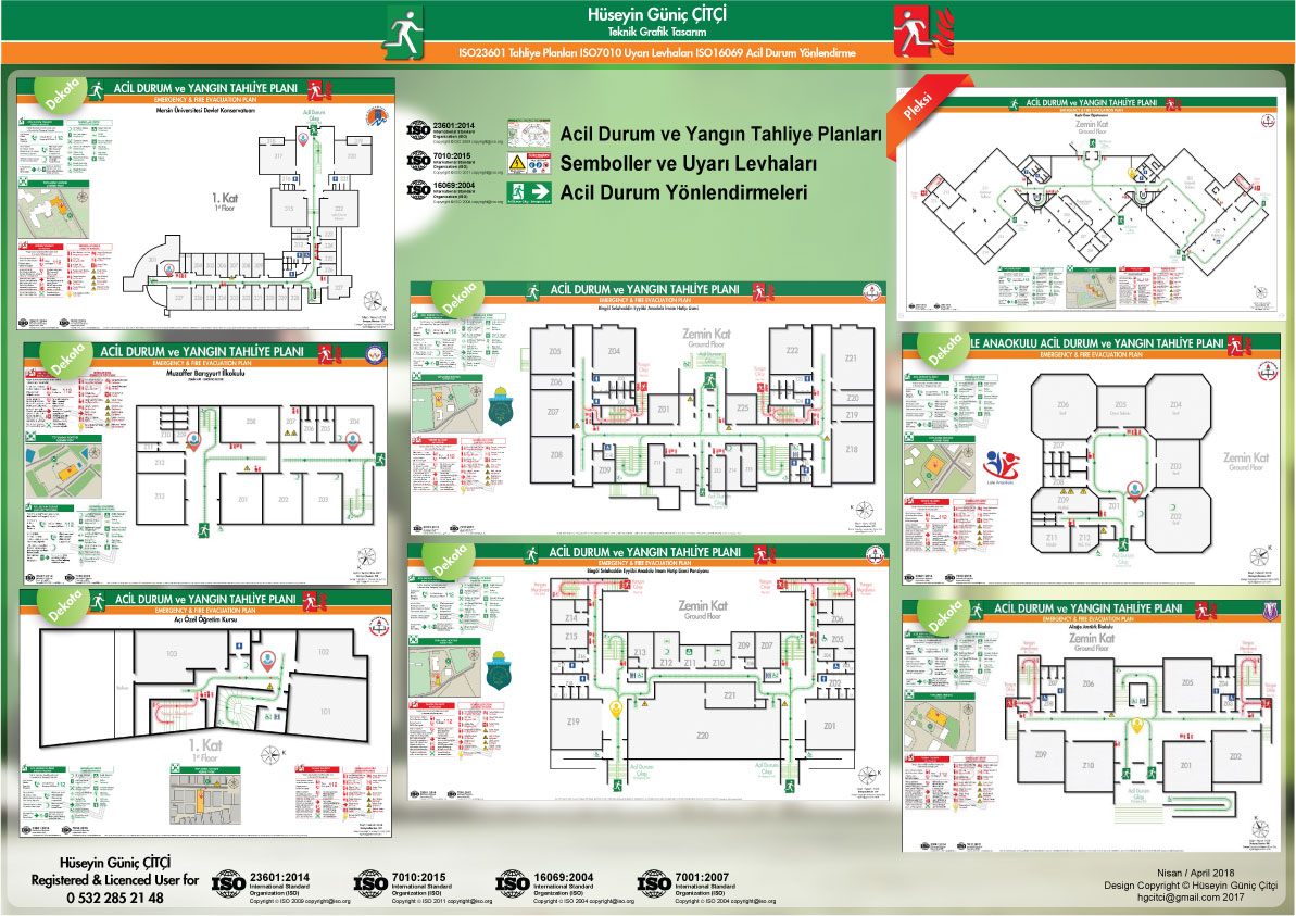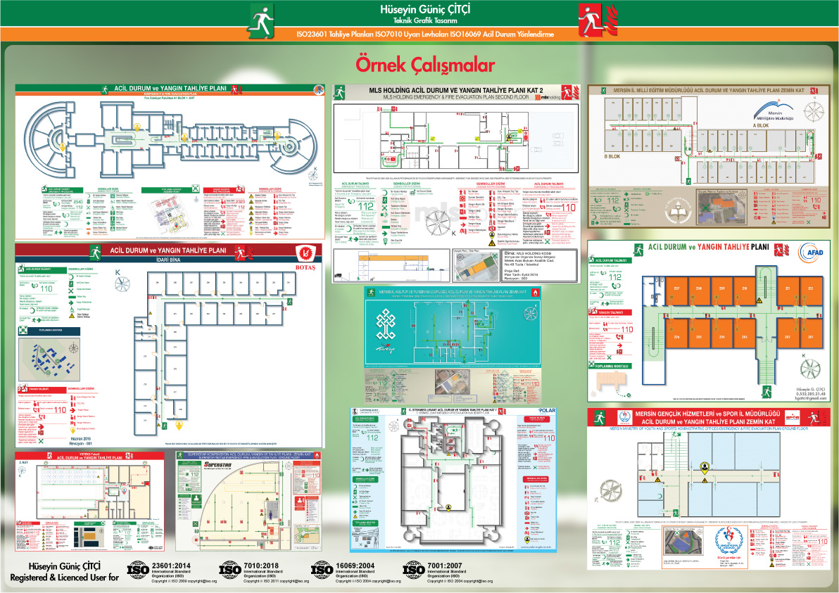 Farklı Sektörlere Ait ISO 23601 Acil Durum ve Yangın Tahliye Planları Kat Tahliye Planları