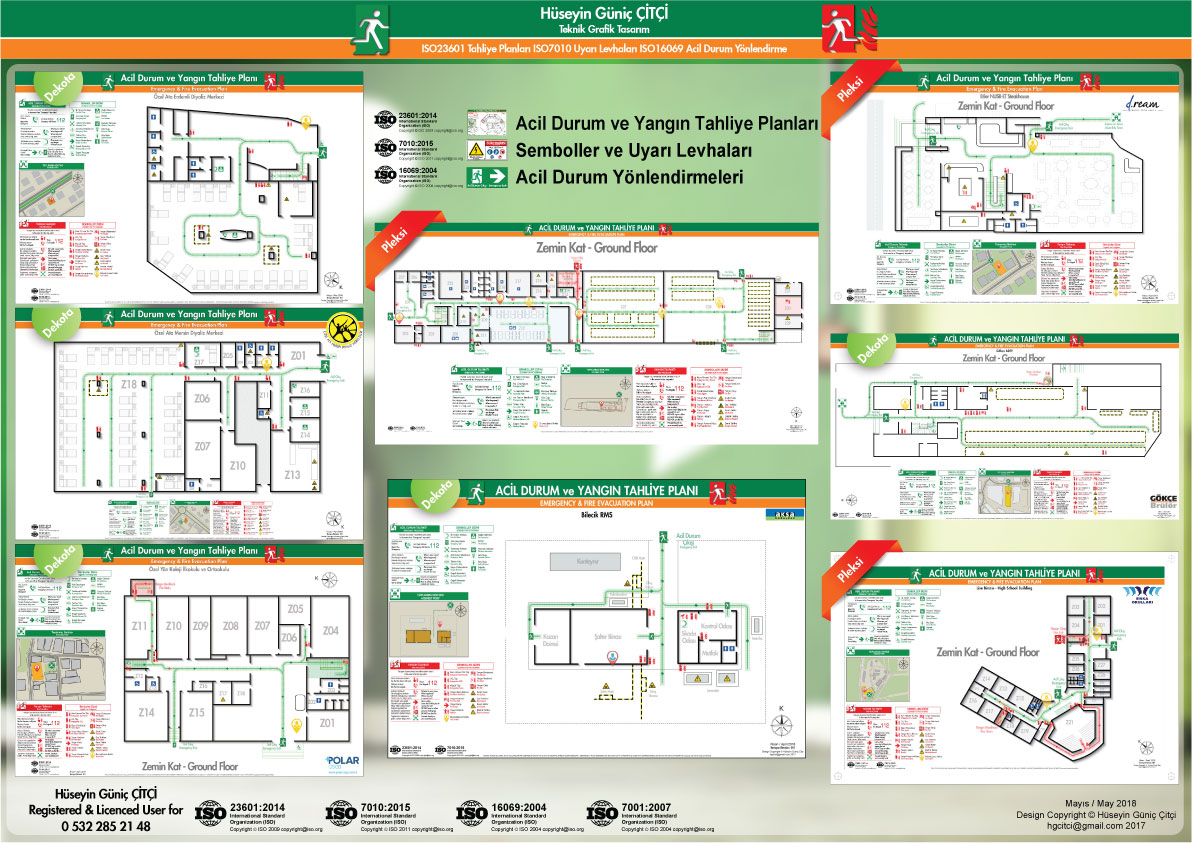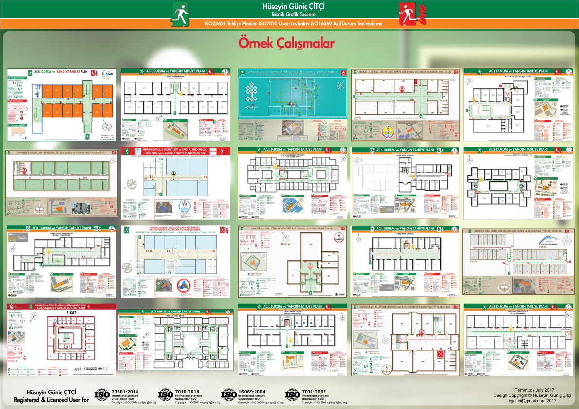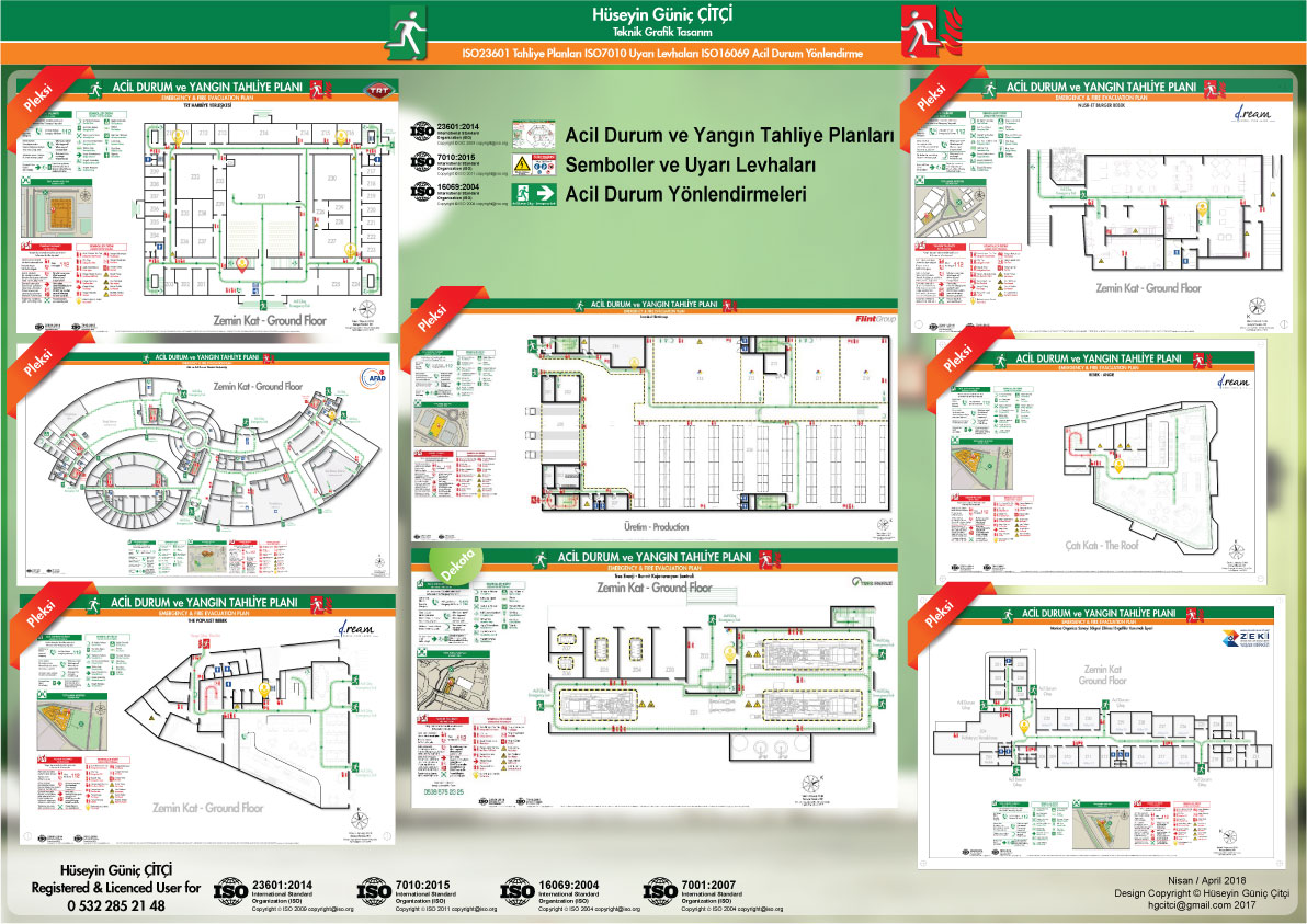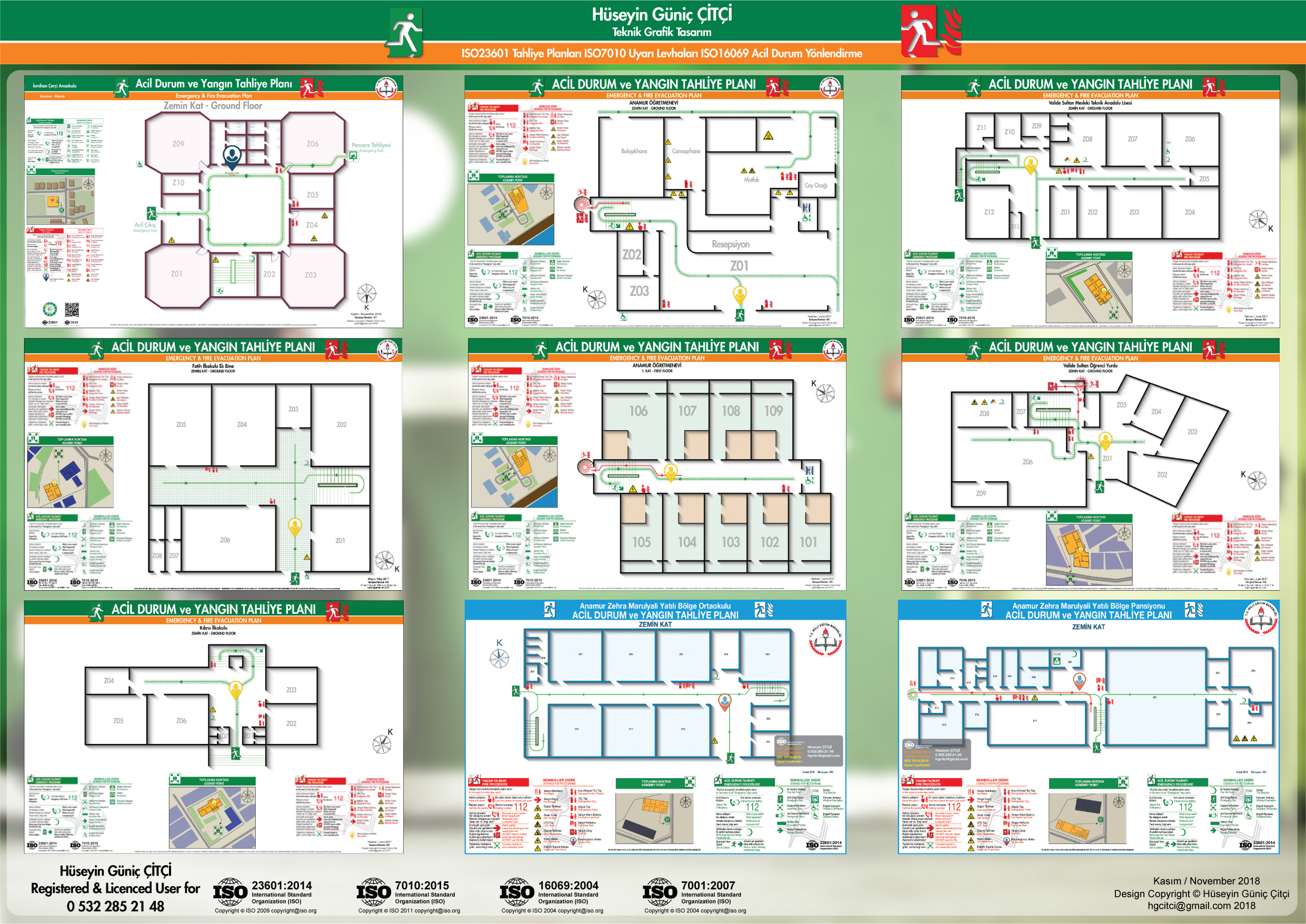 Farklı Sektörlere Ait ISO 23601 Acil Durum ve Yangın Tahliye Planları Kat Tahliye Planları