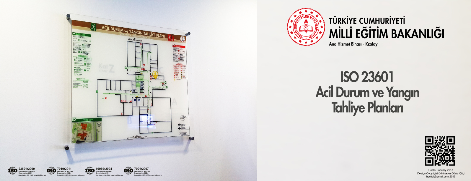Milli Eğitim Bakanlığı Merkez teşkilatı, İSG çalışmaları ve uygulamalarında çok önemli hassasiyet göstermektedir. Milli Eğitim Bakanlığı Ankara’daki binalarında tahliye planlarının tamamı ISO 23601 standartlarında hazırlanmıştır.