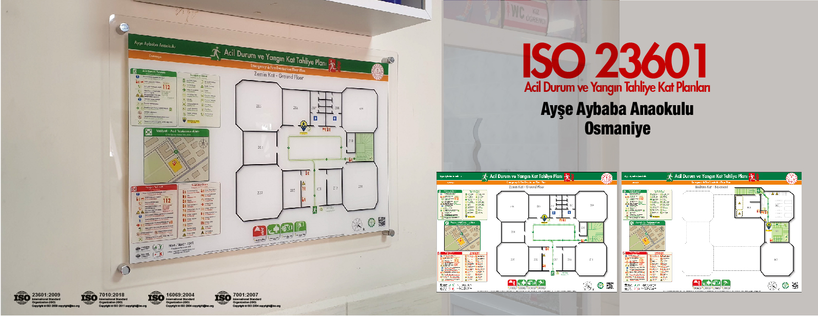 Osmaniye İl Milli Eğitim Müdürlüğünün desteği ve yönlendirmeleriyle il dahilindeki birçok okulda ISO 23601 Acil Durum ve Yangın Tahliye Kat Planları, ISO 16069 Kaçış Yönlendirmeleri ve ISO 7010 uyarı levhaları uygulanmıştır. Örnek bir yapılanma sağlayan Osmaniye İl Milli Eğitim Müdürlüğü diğer illere örnek olmuştur.