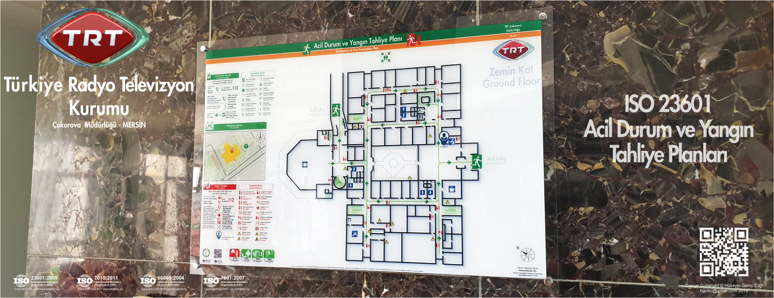 TRT İstanbul, TRT Çukurova, TRT Adana ISO 23601 Acil Durum ve Yangın Tahliye Kat Planları uygulamalarına önem veren örnek kurumlardandır.