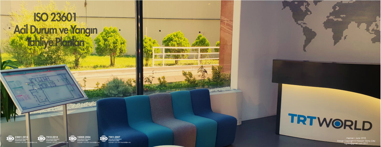 TRT World bünyesinde farklı ülkelerden gelen habercilerle çalışmaktadır. TRT World binası tüm Acil Durum ve Yangın Tahliye Kat Planları ISO 23601 standartlarındadır.