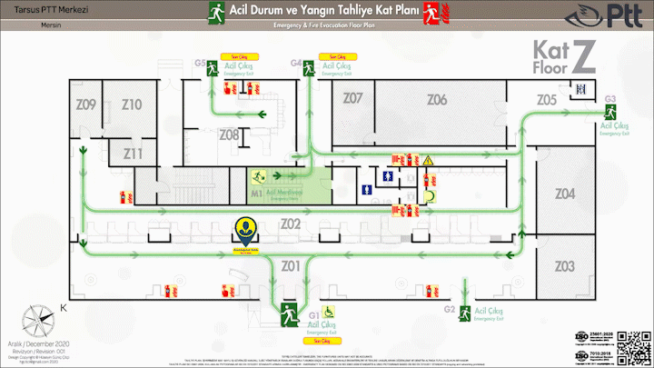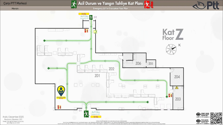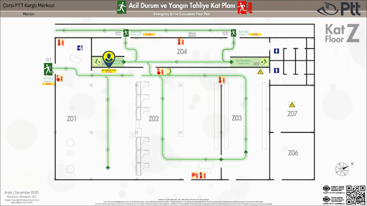 GIF TP 32 izmir btm bitum ISO 23601 Acil Durum ve Yangın Tahliye Kat Planı