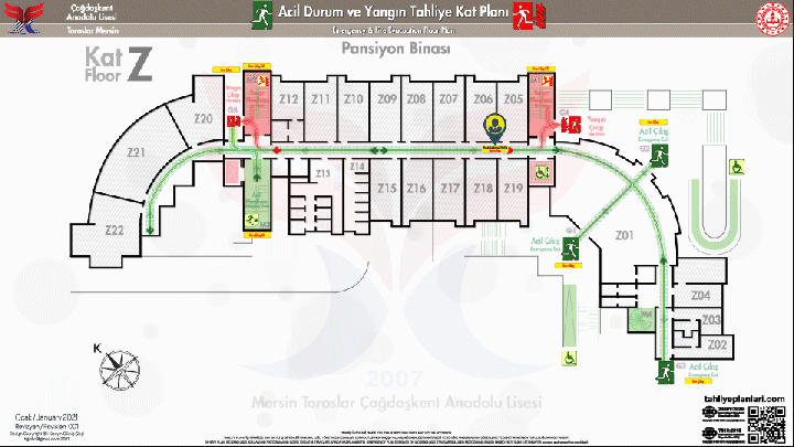 Mersin Öğretmenevi ISO 23601 Acil Durum ve Yangın Tahliye Kat Planı