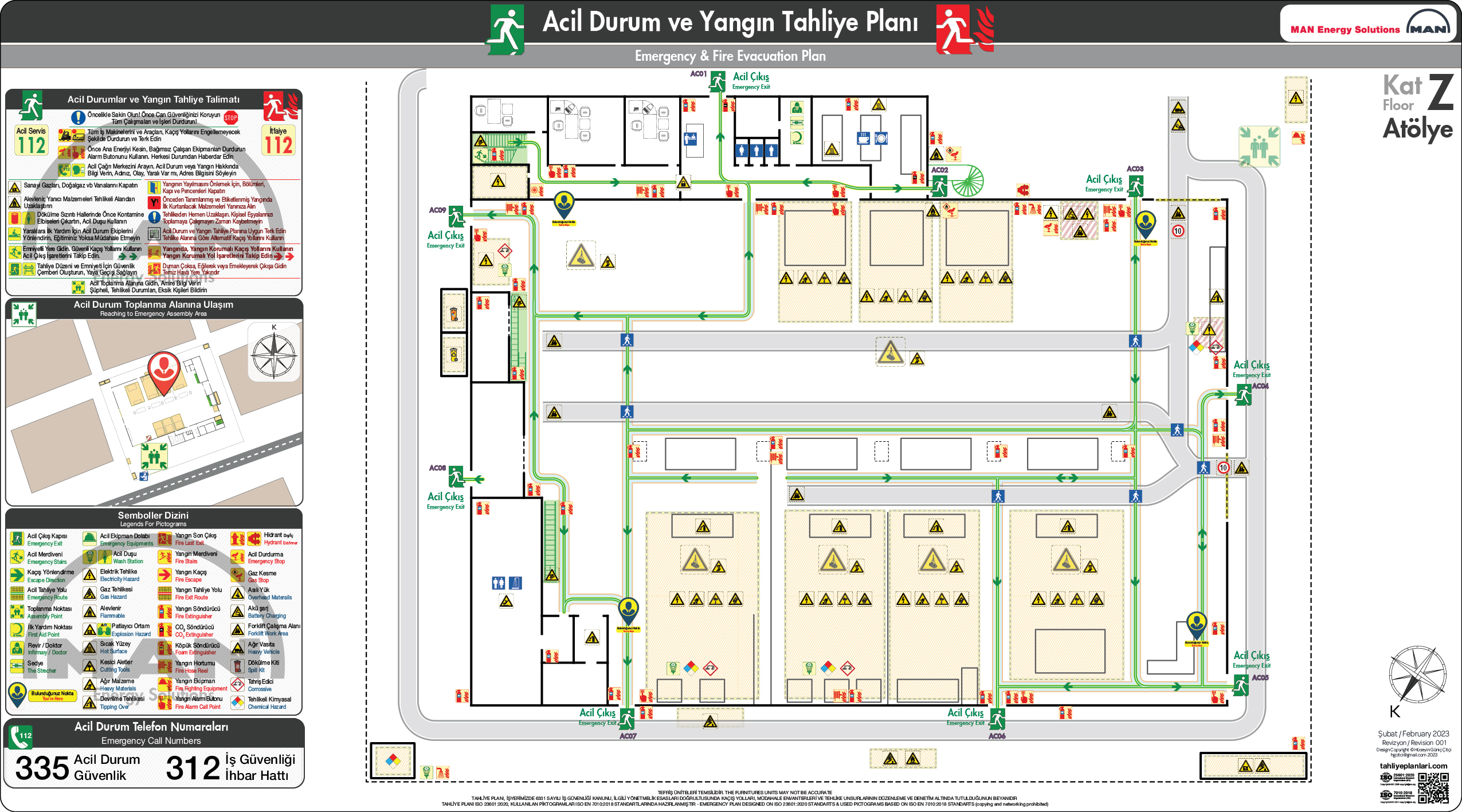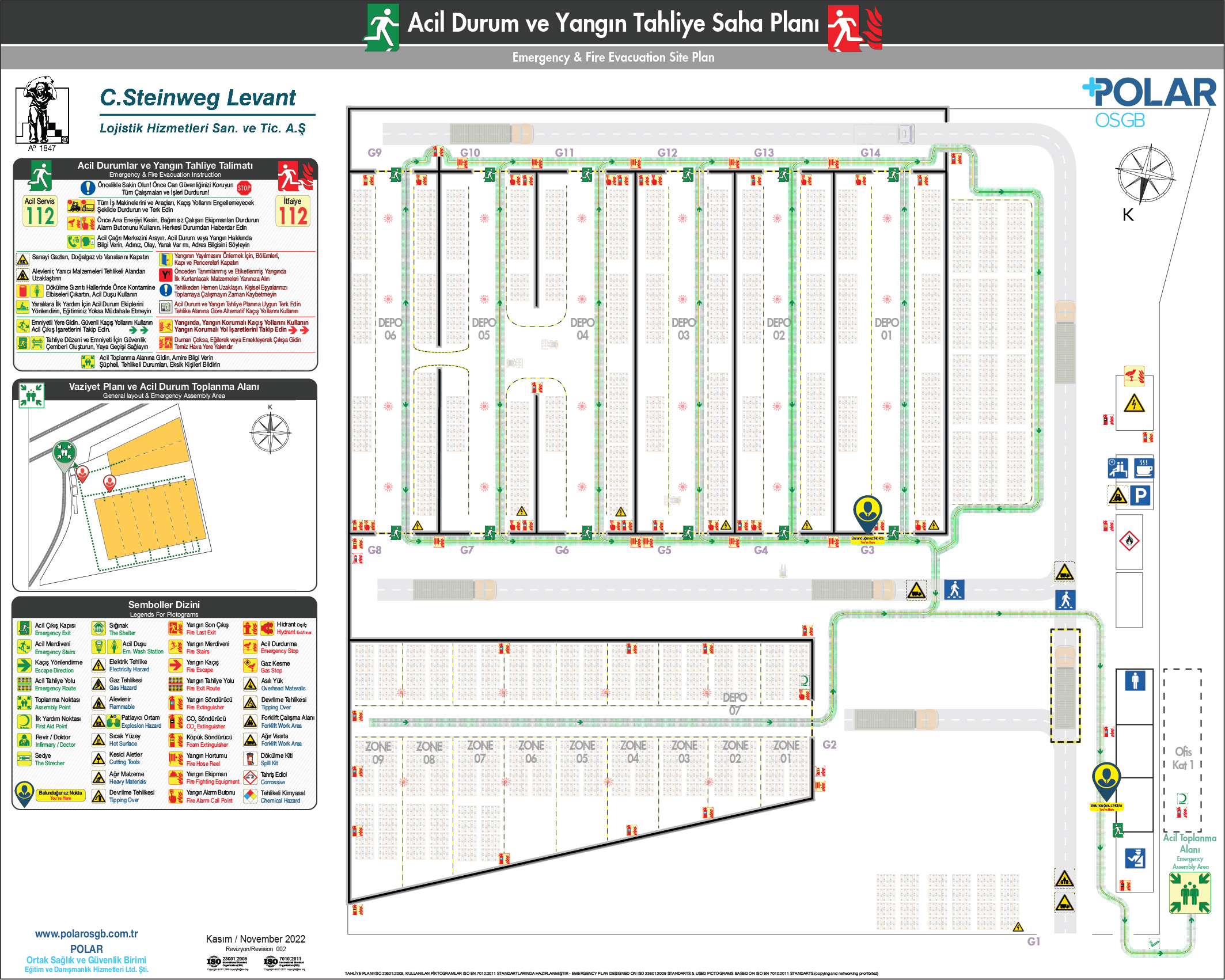 Acil Durum ve Yangın Tahliye Saha Planı 300x500cm (Detaylar için resme tıklayın)