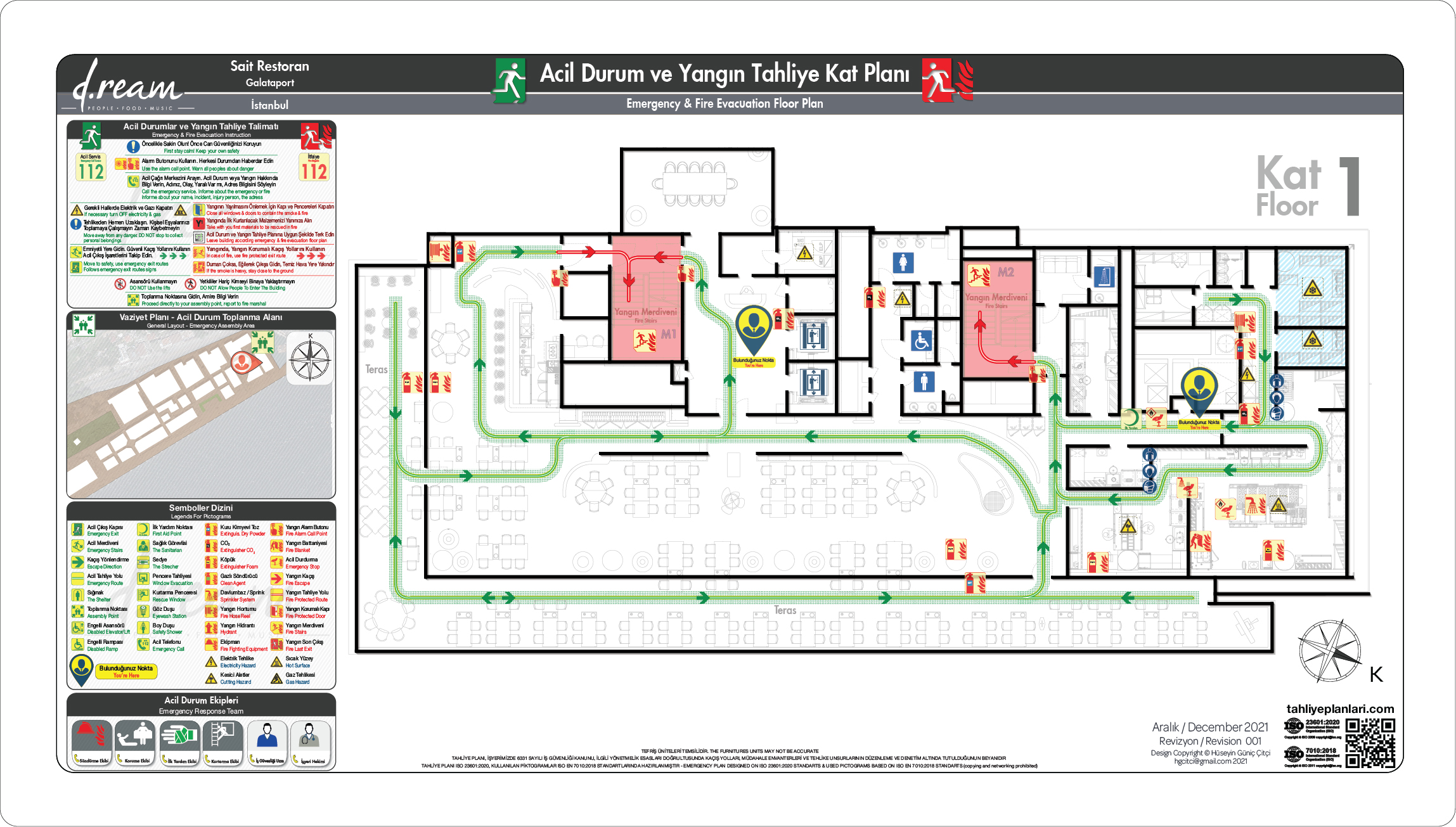 D-Ream Grubu Bodrum İlçesi Restoran işletmeleri ISO 23601 Acil Durum ve Yangın Tahliye Planları Kat Tahliye Planları