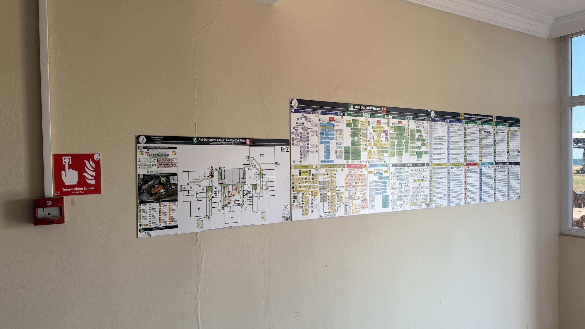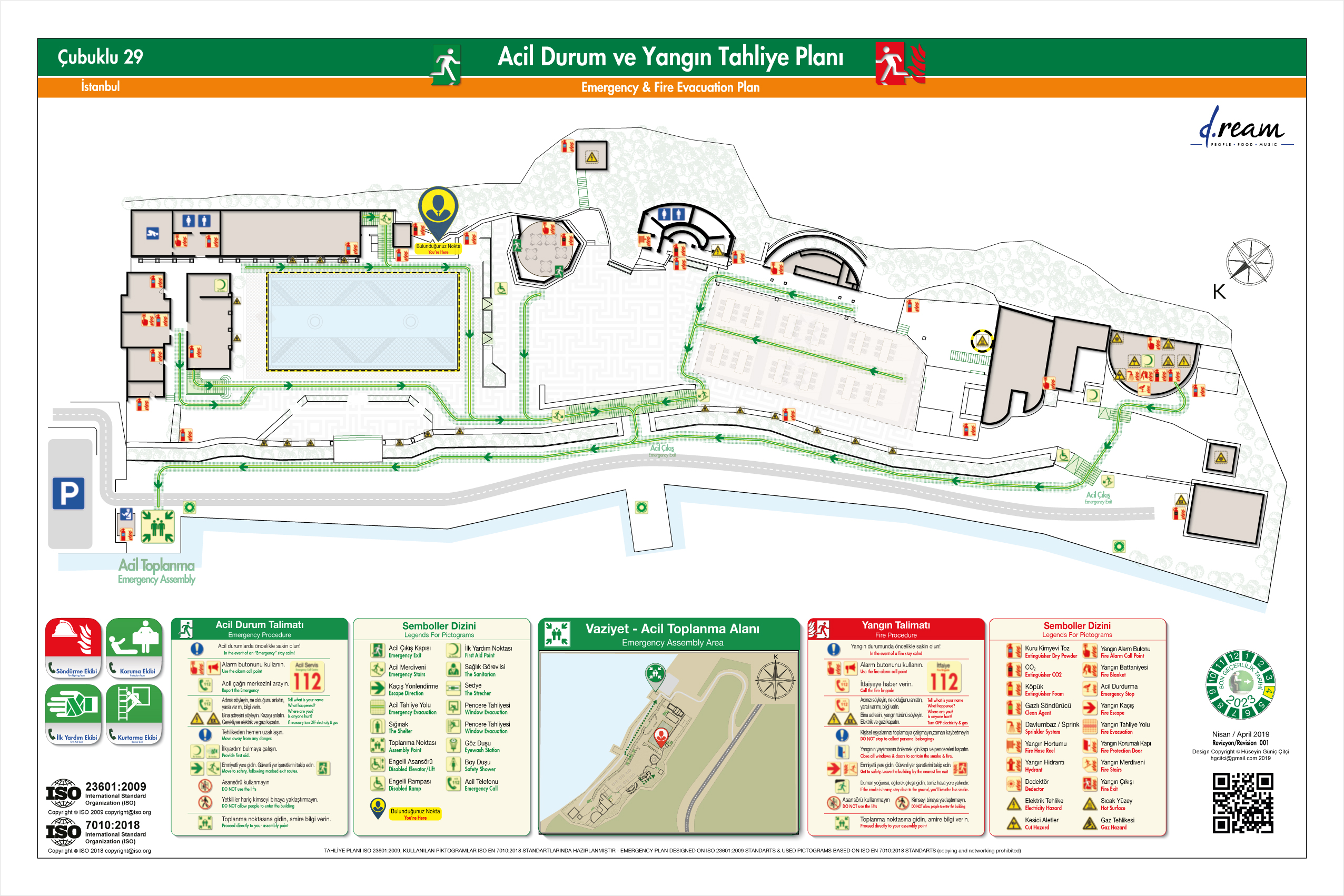 İstanbul Galatasaray Lisesi binasında iş güvenliği çalışmaları kapsamında hazırlanan tüm Acil Durum ve Yangın Tahliye Kat Planları ISO 23601 standartlarındadır.