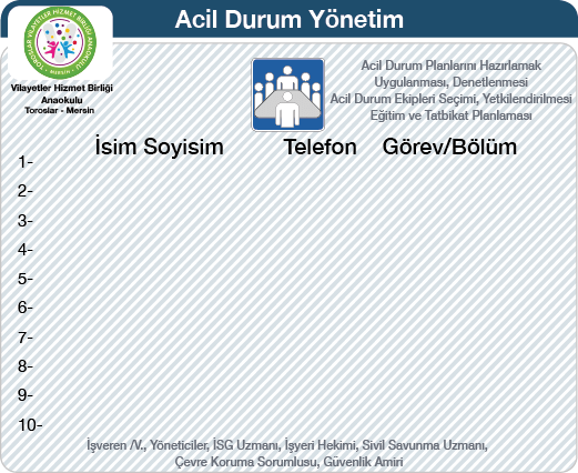 6331 Sayılı Kanun ve İşyerlerinde Acil Durum Yöenetmeliği kapsamında, ilgili hükümler gereği, ziyaretçi ve çalışanların bilgilendirilmesi amacıyla yayımlanmıştır